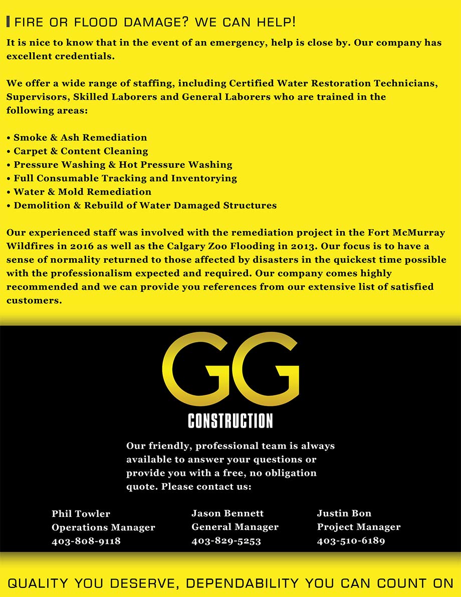 as well as the Calgary Zoo flood in 2013. Our focus is to restore the state of an affected area quickly with